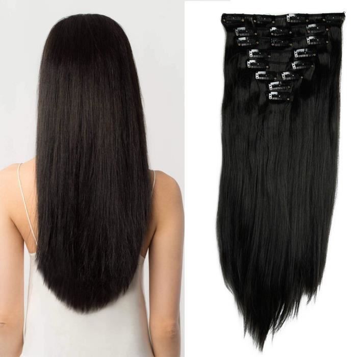 8 Pcs Extensions A Clips Cheveux Naturels Synthetique Lisse Noir