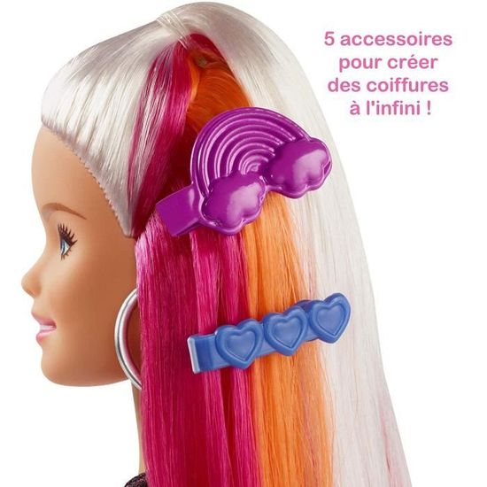 Barbie Poupee Chevelure Arc En Ciel Paillettes Avec Long Cheveux
