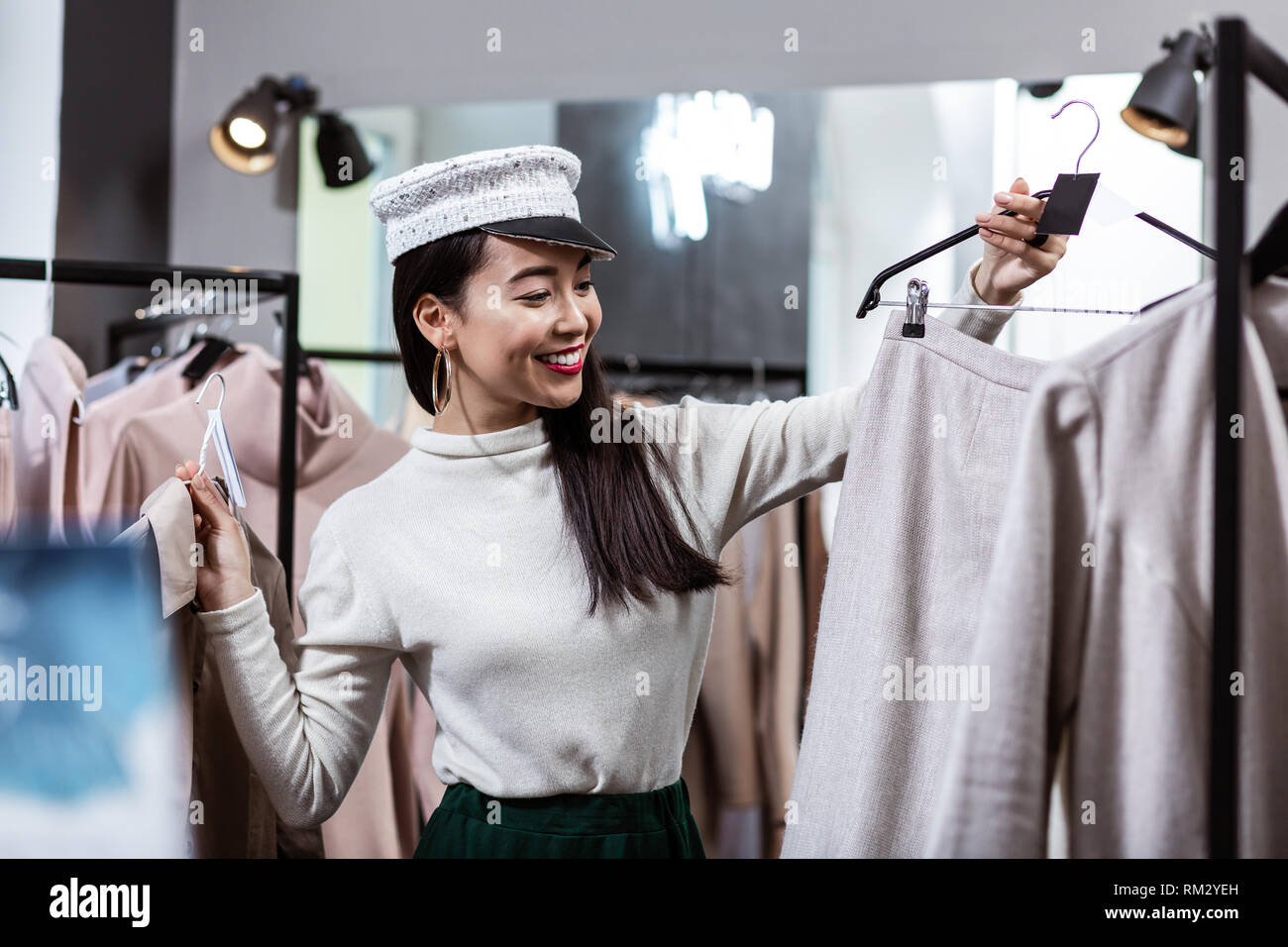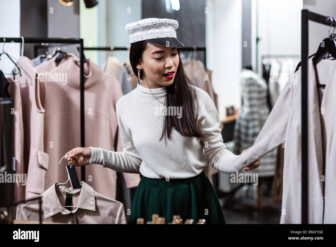 Asiatique Brune Belle Femme Dans Une Belle Coiffure Choisissant