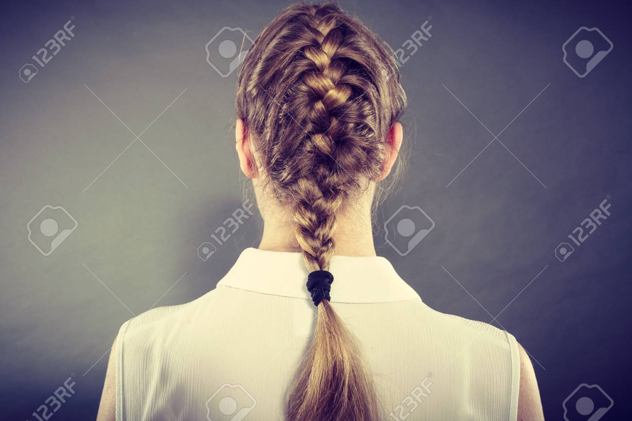 Portrait De Coiffure De Belle Fille Brune Avec Une Coiffure Tresse