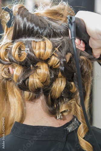 Coiffeur Femme Entrain Se Faire Mettre Des Boucles Buy This