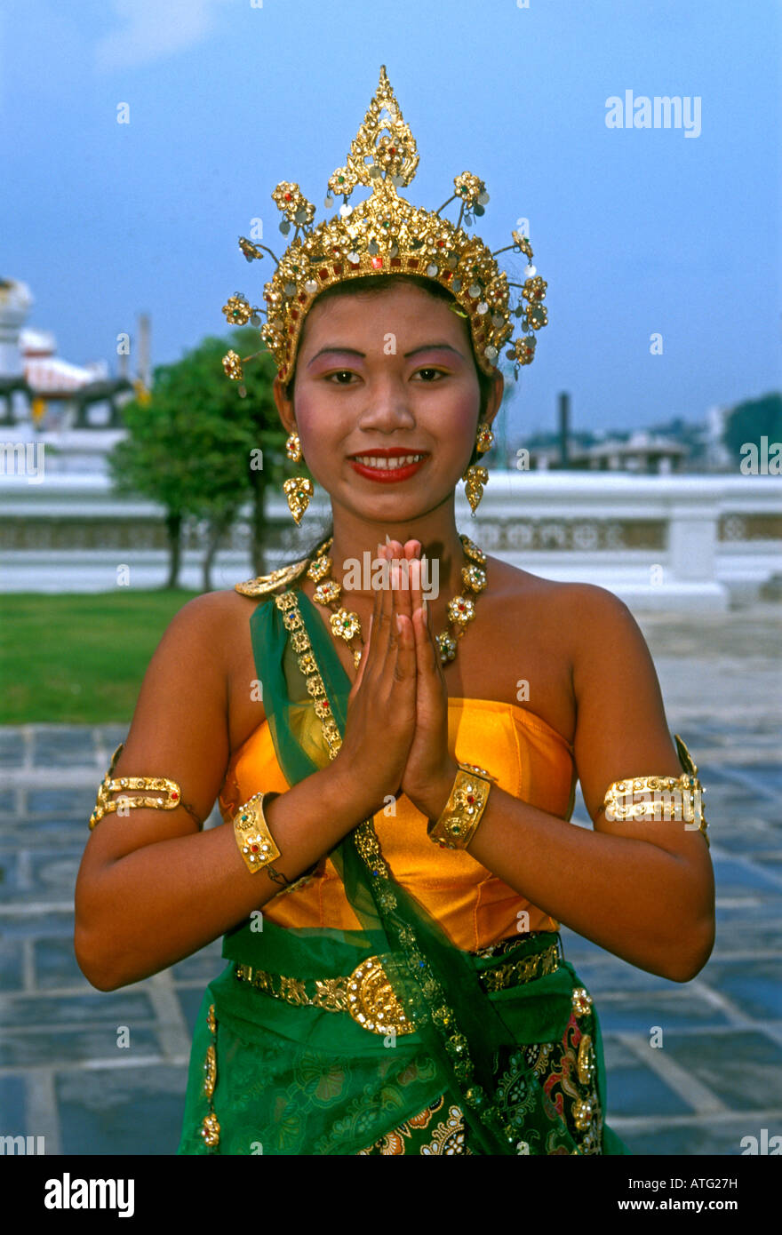 Belle Femme Asiatique Avec Une Robe Traditionnelle Thailandaise En